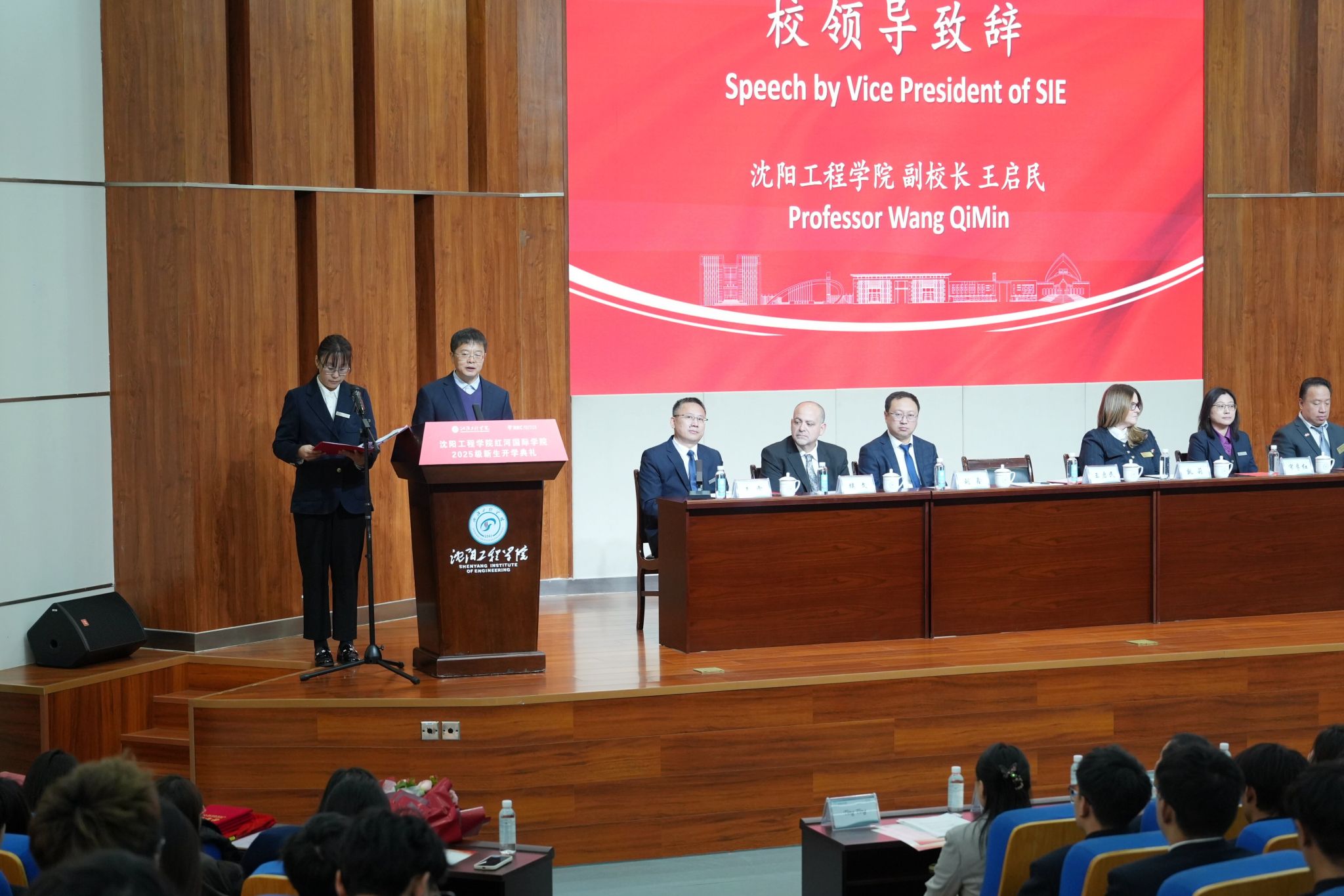 典礼最后,主持人王雷院长作总结发言。他再次感谢各位领导、嘉宾与师生的参与,勉励新生以开学典礼为新起点,在未来的校园生活中 “以梦为马,不负韶华”,收获知识与成长;同时也希望全体教师继续坚守教育初心,为培养更多优秀的国际化人才贡献力量。