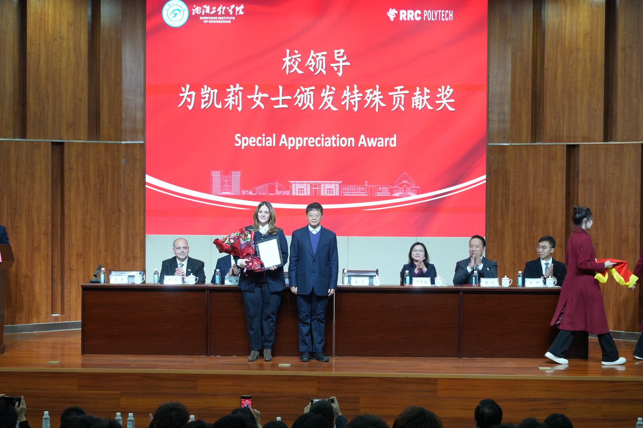 为感谢凯莉院长为两校合作作出的突出贡献,242net官网副校长王启民代表学校为其颁发 “特殊贡献奖”,见证两校友谊的深厚与珍贵。