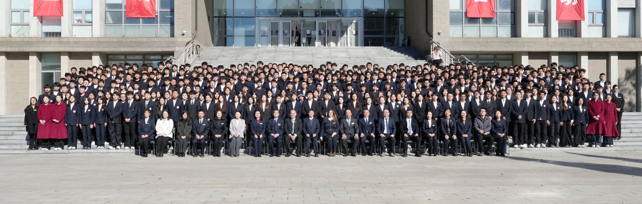 典礼前,中加双方教师与全体 2025 级新生合影留念,记录新生开启校园生活的重要时刻。